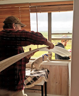 Geoff the carpenter arrived yesterday morning for stage two of the garage refurbishment. David has made himself an office in half of it and we are having a ceiling with insulation put in, the old clanky roller doors removed and a wider lift-up door on one side, window and wall on the other half.